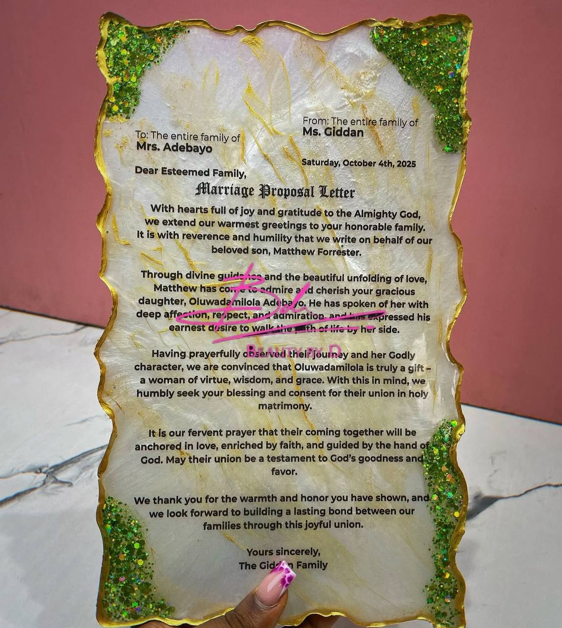 Wedding Resin pallet / letter